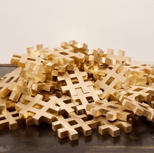 Pile of 65 golden handmade hashtags, bronze cast Meaning Reload When words lost their meaning... spirit of time